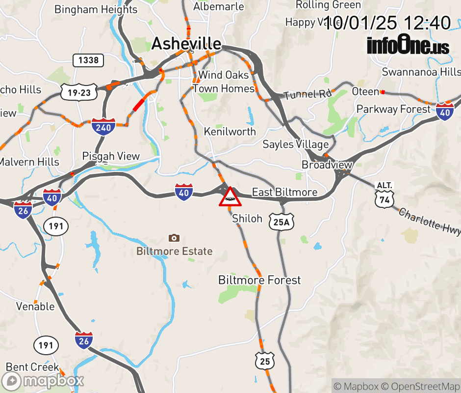 The farthest left turn lane on Exit 50, Us 25 (Hendersonville Road) is closed due to a vehicle crash. ![]() |