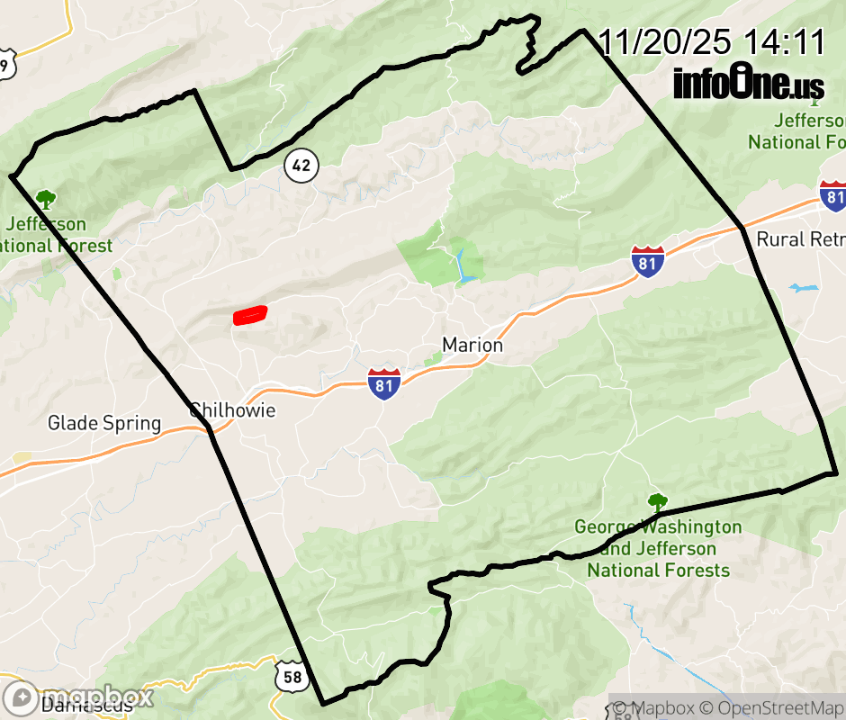 Canceled 11/20/25 2:30 PM Smyth County has 1 power outage affecting 57 customers. Appalachian Power 57 without power Marion: Customers affected: 48 (1%) Estimated repair: Thu 2:45 PM Chilhowie: Customers affected: 9 (< 1%) Estimated repair: Thu 2:45 PM Updated: Thu 11/20/25 2:11 PM EST ![]() Updated: Thu 11/20/25 2:11 PM EST |
