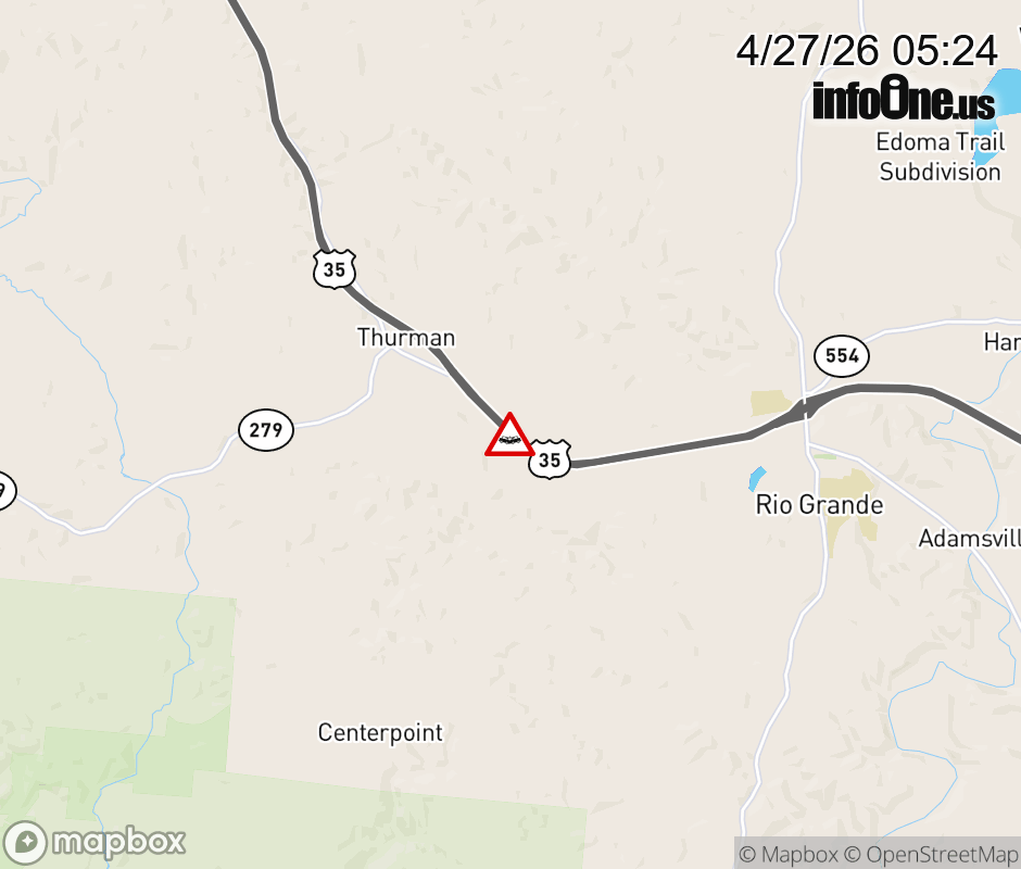 The right lane is closed on US-35 West beyond SR-325, due to a crash. Updated: Mon 4/27/26 5:24 AM EDT ![]() Updated: Mon 4/27/26 5:24 AM EDT |