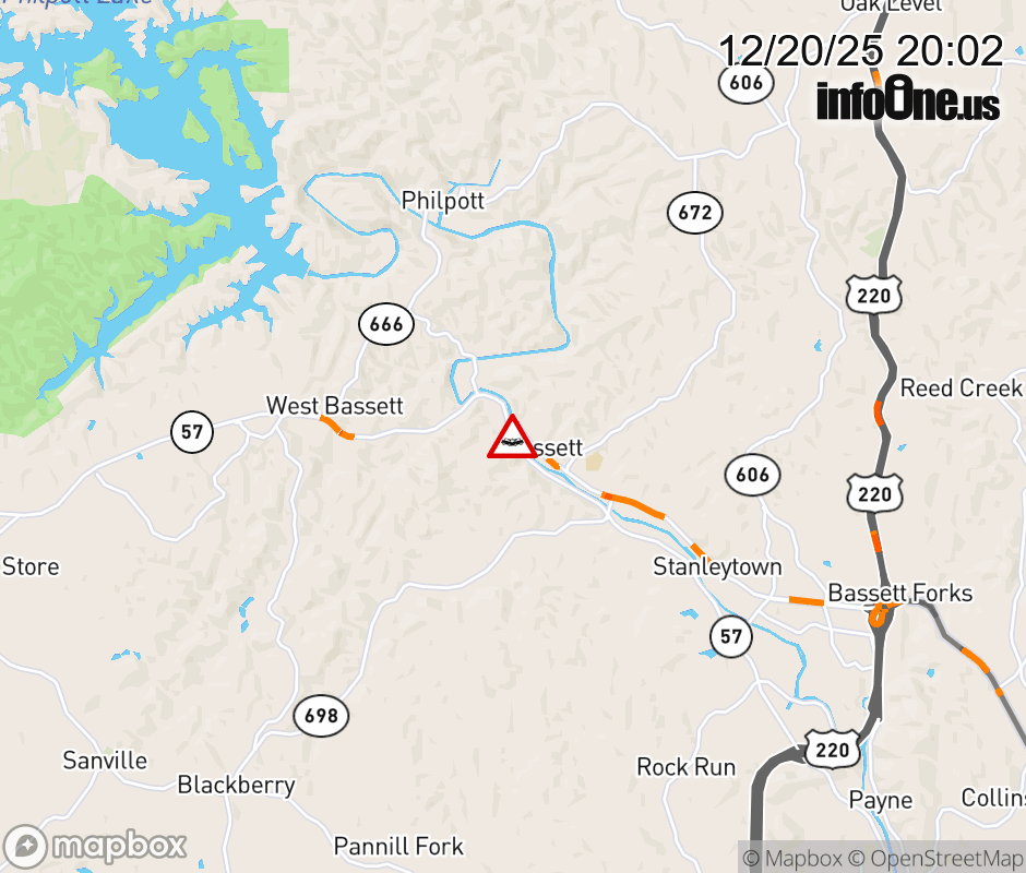 On ALT VA-57 East in the County of Henry, in the vicinity of Bullocks Dr; Mary Hunter Dr; Rt. 712N/S (Henry County), motorists can expect delays due to a tractor trailer crash. Lane closures exist. Updated: Sat 12/20/25 8:02 PM EST ![]() Updated: Sat 12/20/25 8:02 PM EST |