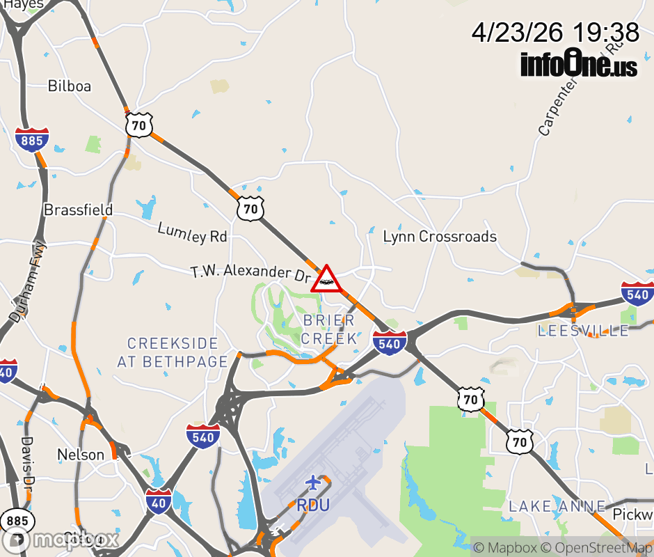 The road is closed at T.W Alexander Dr. ![]() |