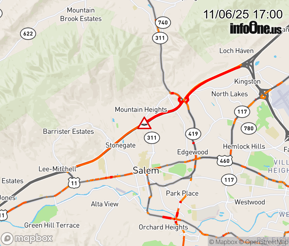 On I-81 at mile marker 140.2 in the County of Roanoke, motorists can expect delays due to a multi-vehicle crash. The south left shoulder and left lane are closed. Updated: Thu 11/6/25 5:00 PM EST ![]() Updated: Thu 11/6/25 5:00 PM EST |