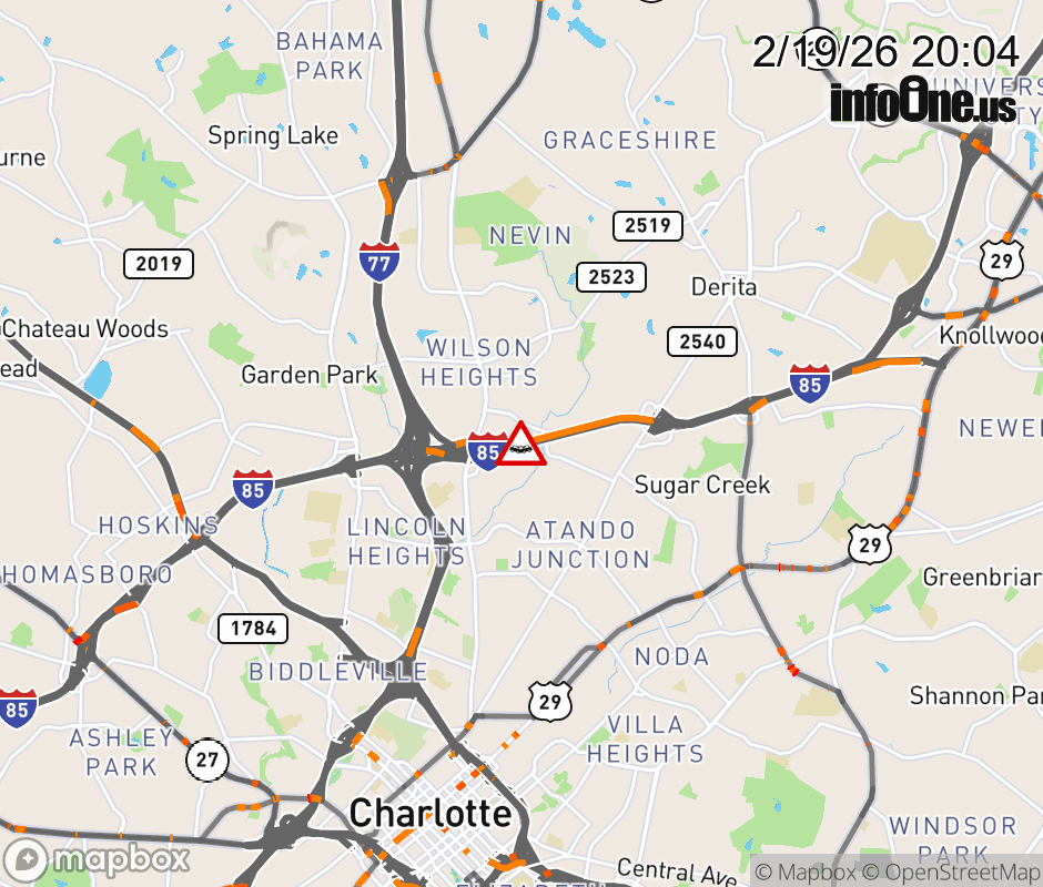 The right shoulder is closed prior to Exit 39 (Statesville Road). Updated: Thu 2/19/26 8:04 PM EST ![]() Updated: Thu 2/19/26 8:04 PM EST |