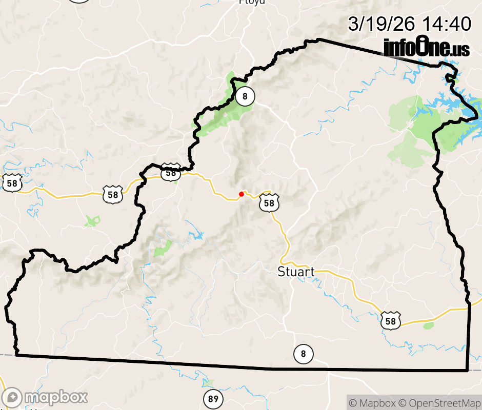 Canceled 3/19/26 4:30 PM Patrick County has 1 power outage affecting 4 customers. Appalachian Power 4 without power Stuart: Customers affected: <5 (< 1%) Estimated repair: Thu 4:30 PM Updated: Thu 3/19/26 2:40 PM EDT ![]() Updated: Thu 3/19/26 2:40 PM EDT |