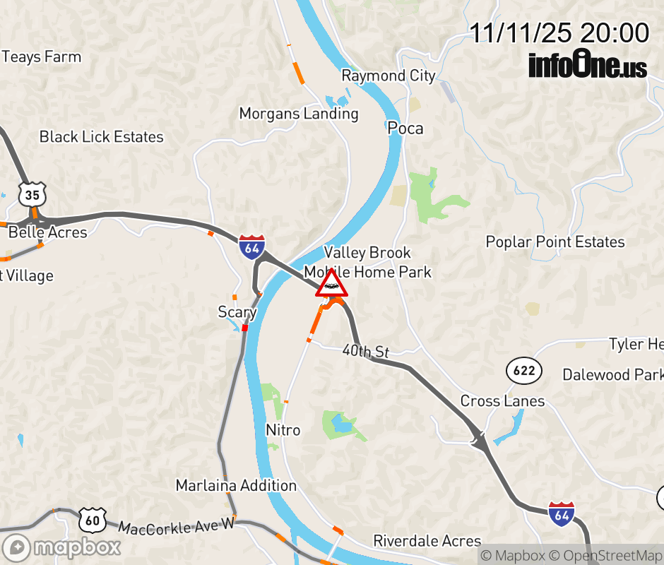 Vehicle Crash on WV 25 & i-64 West. The northbound road is closed. The southbound road is closed. Updated: Tue 11/11/25 8:00 PM EST ![]() Updated: Tue 11/11/25 8:00 PM EST |