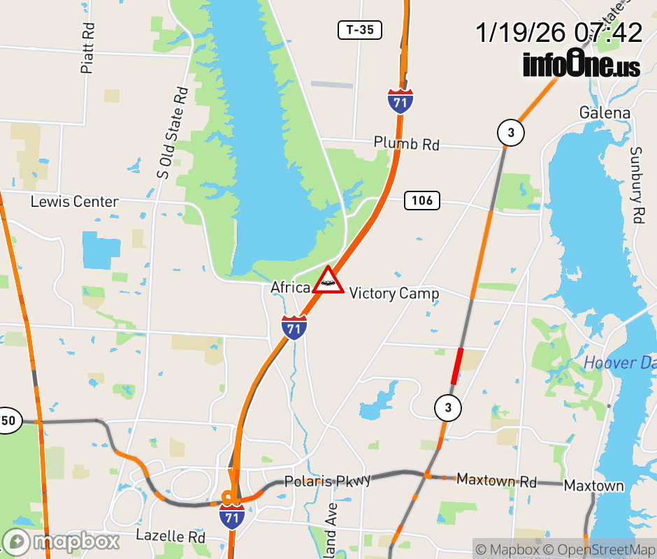Expect lane closures on I-71 in both directions 3.7 miles beyond Polaris Pkwy/Gemini Place. (MM: 124.7), due to crash. ![]() |