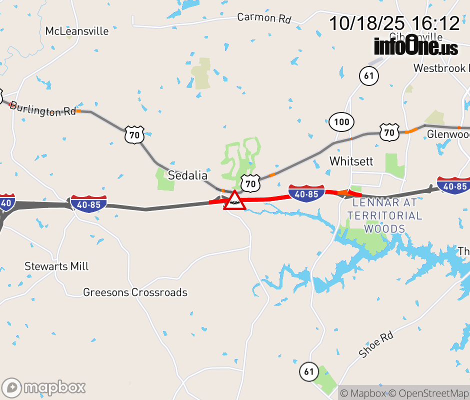 Canceled 10/18/25 5:12 PM Location: I-85S at MM 135, NC Vehicle Crash.