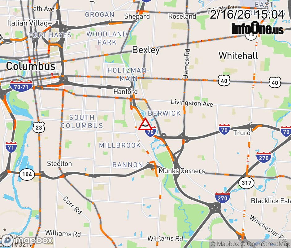The right shoulder is blocked on I-70 East beyond Alum Creek Dr/Livingston Ave, due to a crash. ![]() |