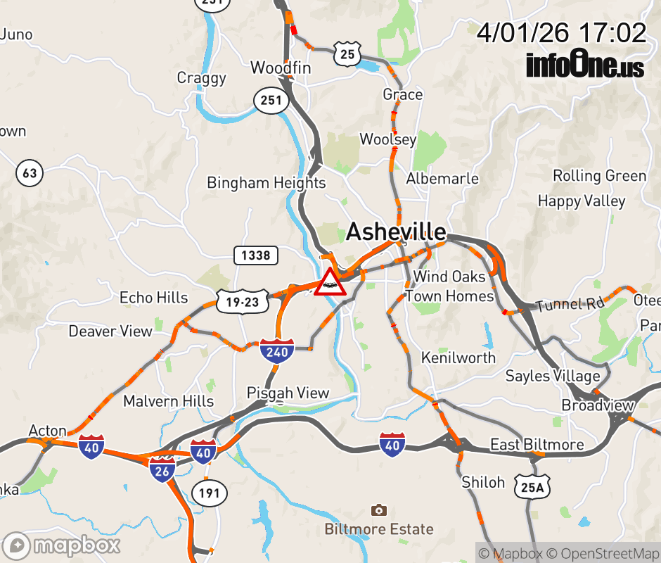 The right shoulder is closed near Exit 4A, I-26 West. Updated: Wed 4/1/26 5:02 PM EDT ![]() Updated: Wed 4/1/26 5:02 PM EDT |