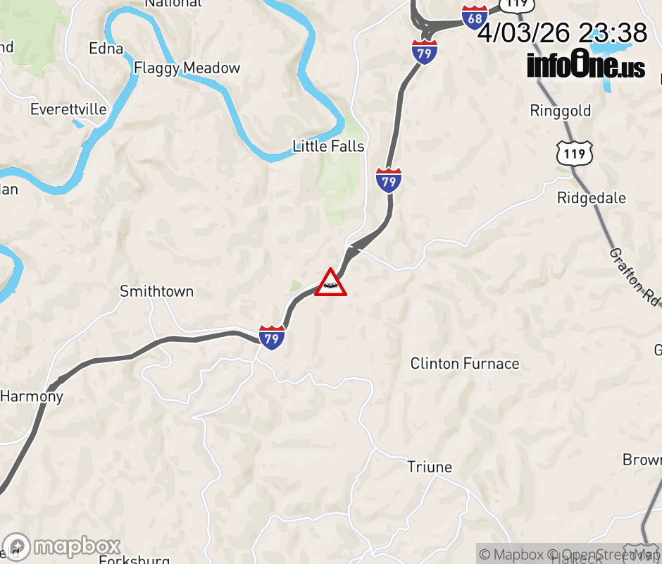 Vehicle Crash on I-79S at Mile Marker 145.0. The southbound road is closed. Updated: Fri 4/3/26 11:38 PM EDT ![]() Updated: Fri 4/3/26 11:38 PM EDT |