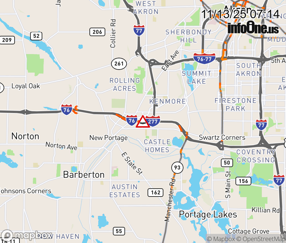 The 2 right lanes are blocked on I-76/US-224 East at US-224, due to a crash. Updated: Thu 11/13/25 7:14 AM EST ![]() Updated: Thu 11/13/25 7:14 AM EST |