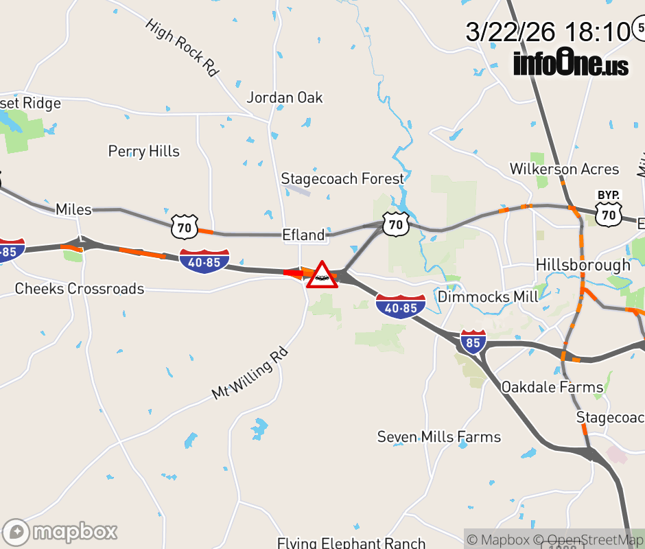 The right shoulder is closed near Exit 161 (US 70). Updated: Sun 3/22/26 6:10 PM EDT ![]() Updated: Sun 3/22/26 6:10 PM EDT |