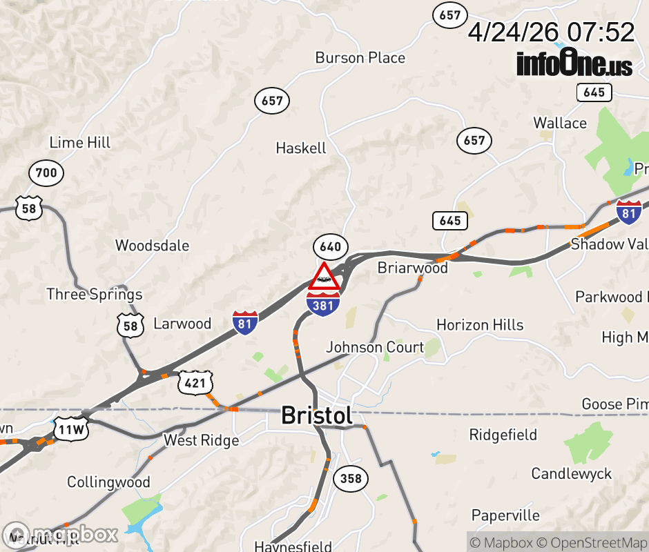 On I-81 at mile marker 3.7 in the County of Washington, motorists can expect delays due to a vehicle crash. The north exit ramp narrows. ![]() |