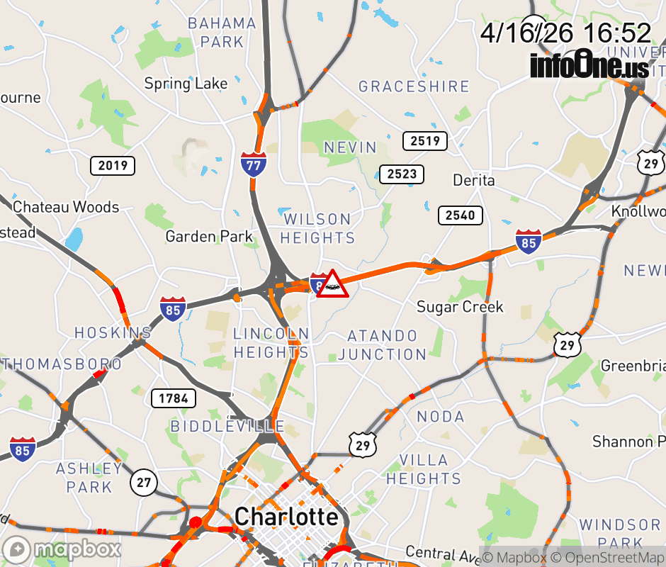 The right shoulder is closed at Exit 39 (Statesville Ave.). Updated: Thu 4/16/26 4:52 PM EDT ![]() Updated: Thu 4/16/26 4:52 PM EDT |
