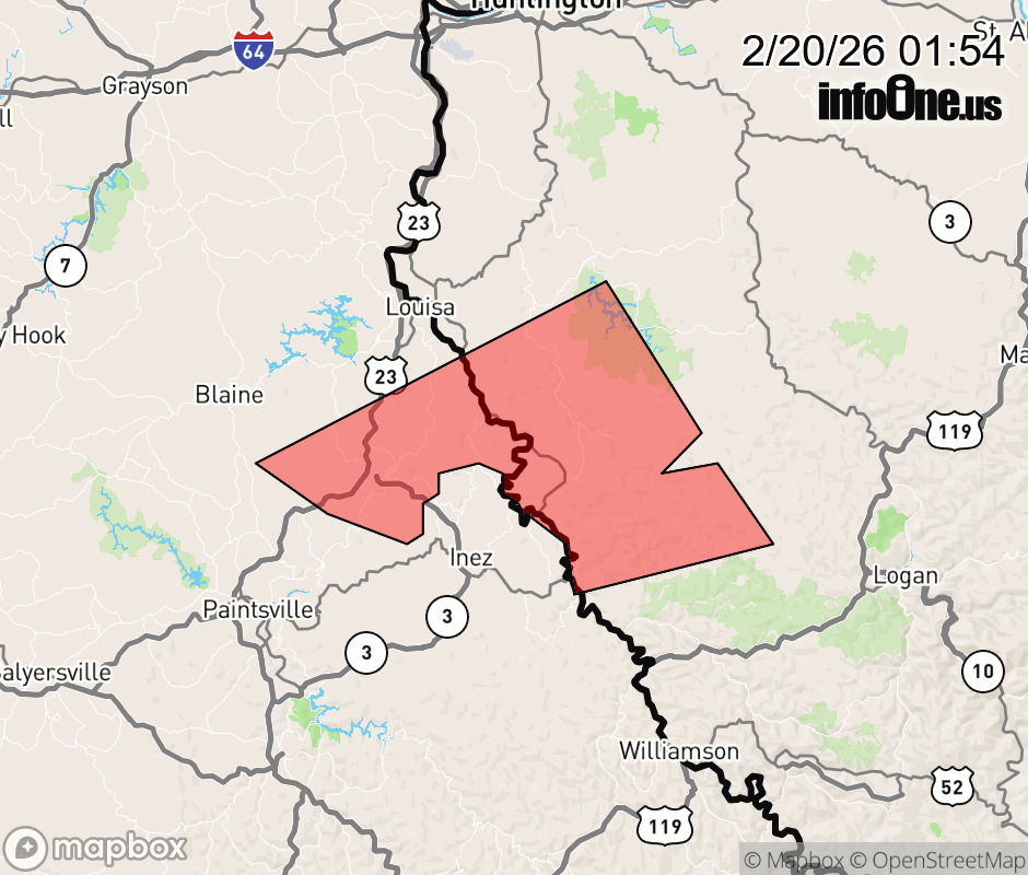 Canceled 2/20/26 2:30 AM Special Weather Statement issued February 20 at 1:53AM EST by NWS Charleston WV At 153 AM EST, Doppler radar was tracking a cluster of strong thunderstorms over Tomahawk, or near Inez, moving northeast at 45 mph. HAZARD...Wind gusts up to 50 mph and pea size hail. SOURCE...Radar indicated. IMPACT...Gusty winds could knock down tree limbs and blow around unsecured objects. Minor hail damage to vegetation is possible. Locations impacted include... Dunlow, Ulysses, Charley, Hode, Kermit, Gallup, Wilsondale, Crum, Clifford, Glenhayes, and Breeden. ![]() |
