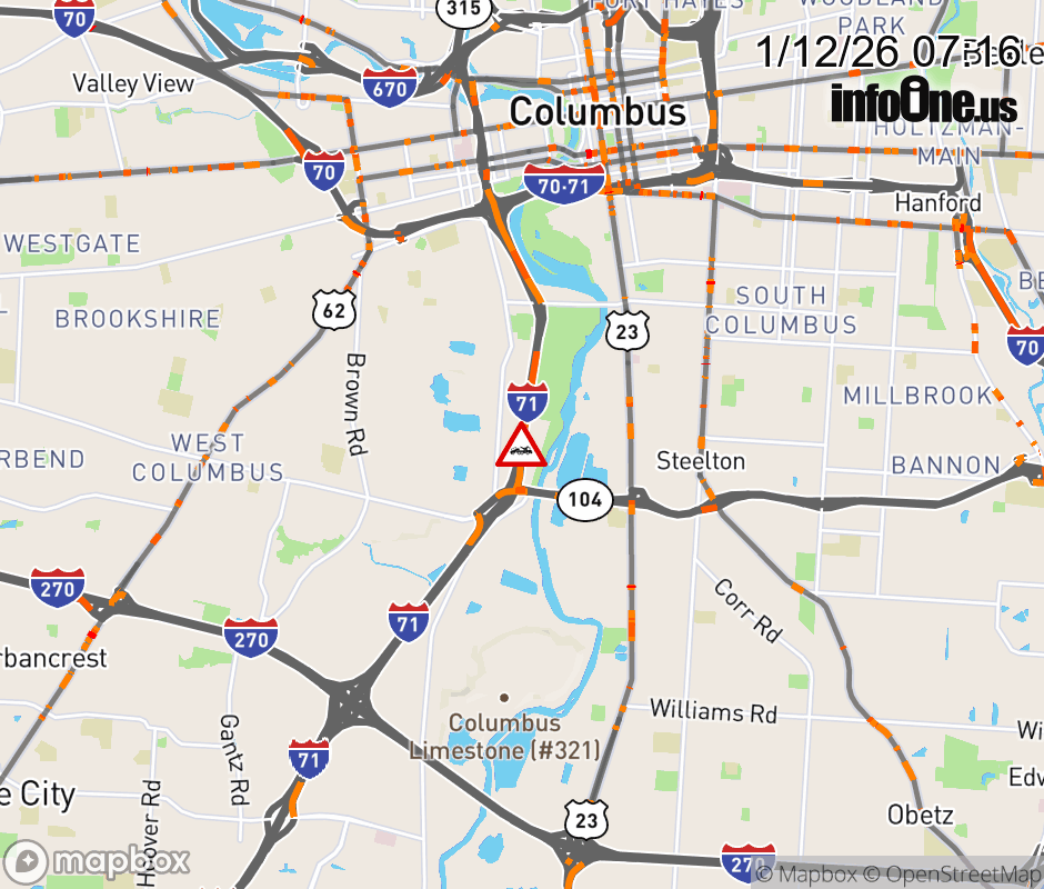 The right shoulder is blocked on I-71 North beyond SR-104/Frank Rd, due to a disabled vehicle. ![]() Updated: Mon 1/12/26 7:16 AM EST |