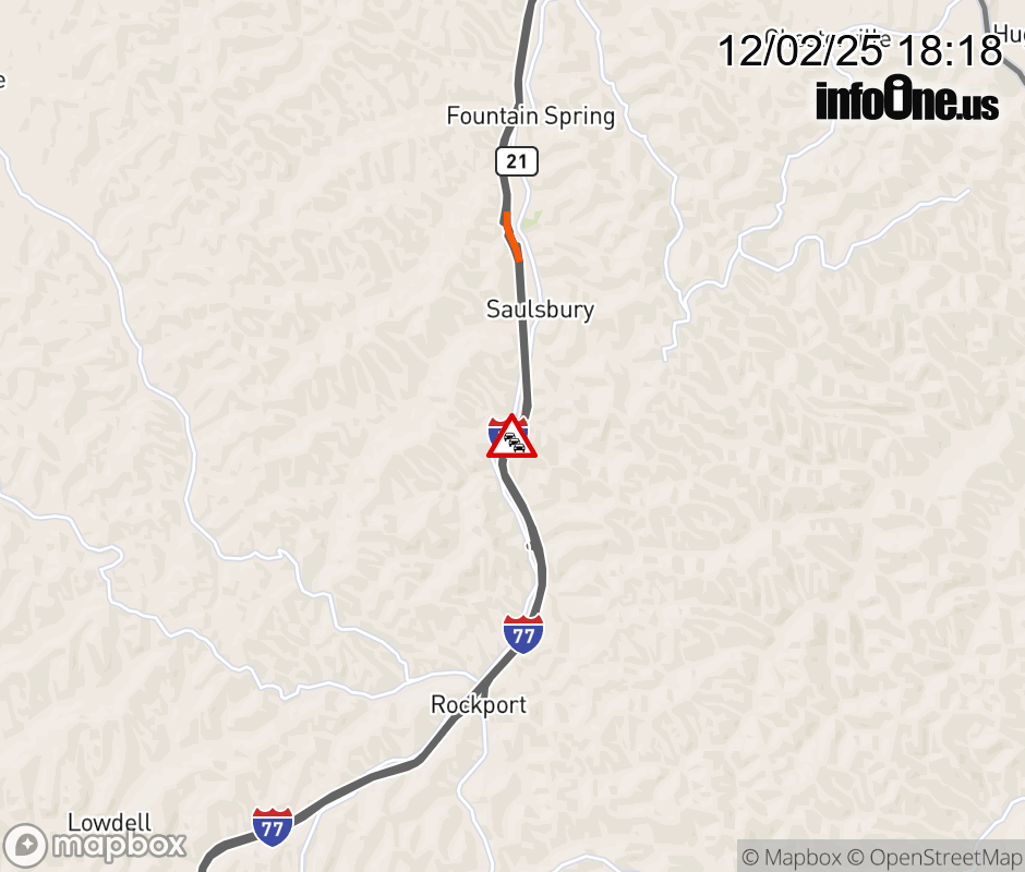 Canceled 12/3/25 9:10 AM Location: I-77 at MM 164.0, WV Traffic hazard.