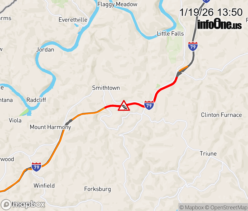Vehicle Fire on I-79N at Mile Marker 143.0. The northbound road is closed. Updated: Mon 1/19/26 1:50 PM EST ![]() Updated: Mon 1/19/26 1:50 PM EST |