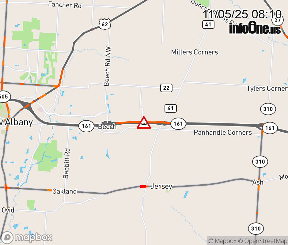 The right shoulder is blocked on SR-161 West beyond Mink St, due to a crash. Updated: Wed 11/5/25 8:10 AM EST ![]() |