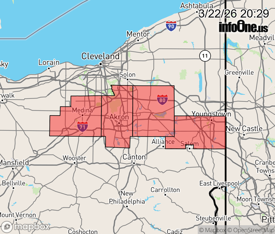 Canceled 3/22/26 9:28 PM Severe Thunderstorm Watch issued March 22 at 8:27PM EDT until March 23 at 12:00AM EDT by NWS Cleveland OH THE NATIONAL WEATHER SERVICE HAS EXTENDED SEVERE THUNDERSTORM WATCH 73 TO INCLUDE THE FOLLOWING AREAS UNTIL MIDNIGHT EDT TONIGHT IN OHIO THIS WATCH INCLUDES 4 COUNTIES IN NORTHEAST OHIO MAHONING MEDINA PORTAGE SUMMIT THIS INCLUDES THE CITIES OF AKRON, AURORA, AUSTINTOWN, BOARDMAN, BRUNSWICK, KENT, MEDINA, RAVENNA, STREETSBORO, WADSWORTH, AND YOUNGSTOWN. ![]() |