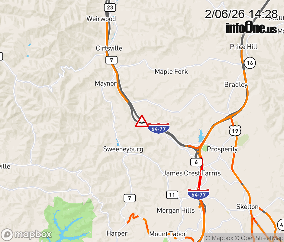Vehicle Crash on I-77N at Mile Marker 49.5. Comments:USE CAUTION. Updated: Fri 2/6/26 2:28 PM EST ![]() Updated: Fri 2/6/26 2:28 PM EST |