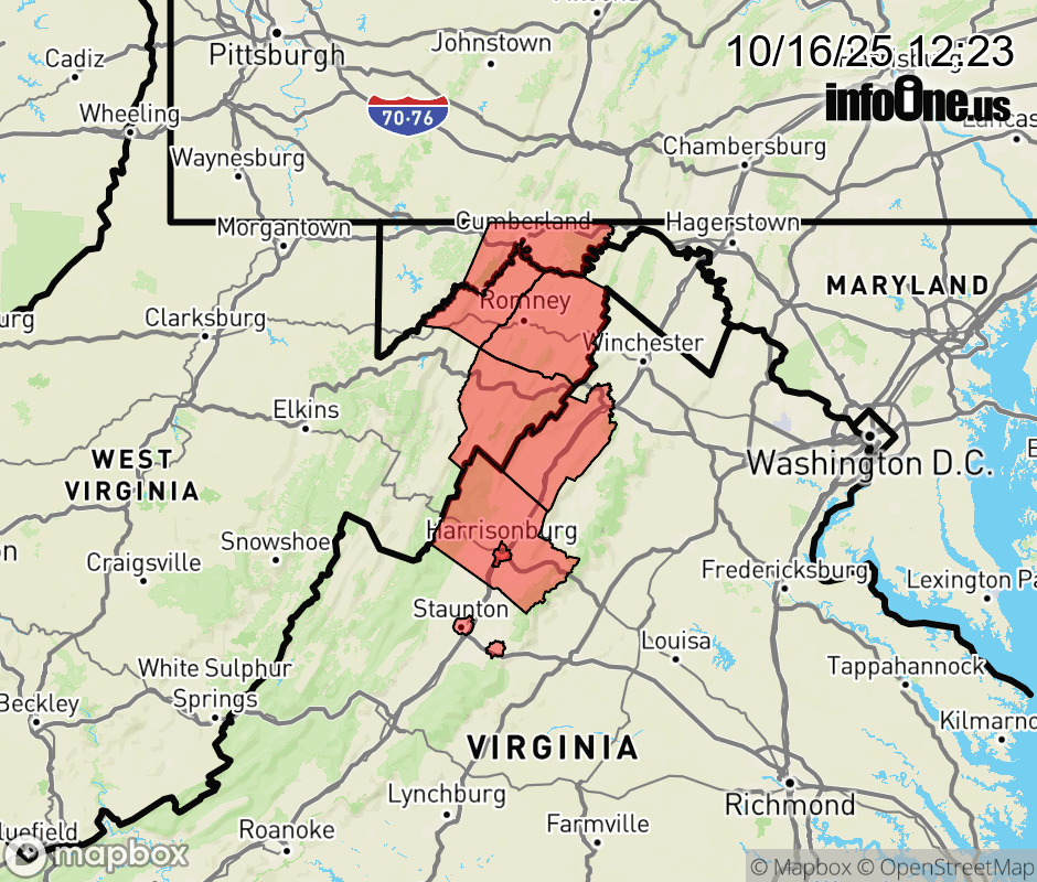 Canceled 10/16/25 8:27 PM Freeze Warning issued October 16 at 12:22PM EDT until October 17 at 9:00AM EDT by NWS Baltimore MD/Washington DC * WHAT... Sub-freezing temperatures in the low 30s are expected. * WHERE... In Maryland, Central and Eastern Allegany and Extreme Western Allegany Counties. In Virginia, Shenandoah, Augusta, and Rockingham Counties. In West Virginia, Eastern Mineral, Hampshire, and Hardy Counties. * WHEN... From 2 AM to 9 AM EDT Friday. * IMPACTS... Frost and freeze conditions could kill crops, other sensitive vegetation and possibly damage unprotected outdoor plumbing. ![]() |