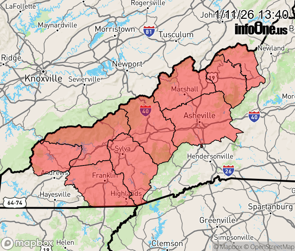 Buncombe, Graham, Haywood, Macon, Madison, Mitchell, Northern Jackson, Southern Jackson, Swain, and Yancey Counties.