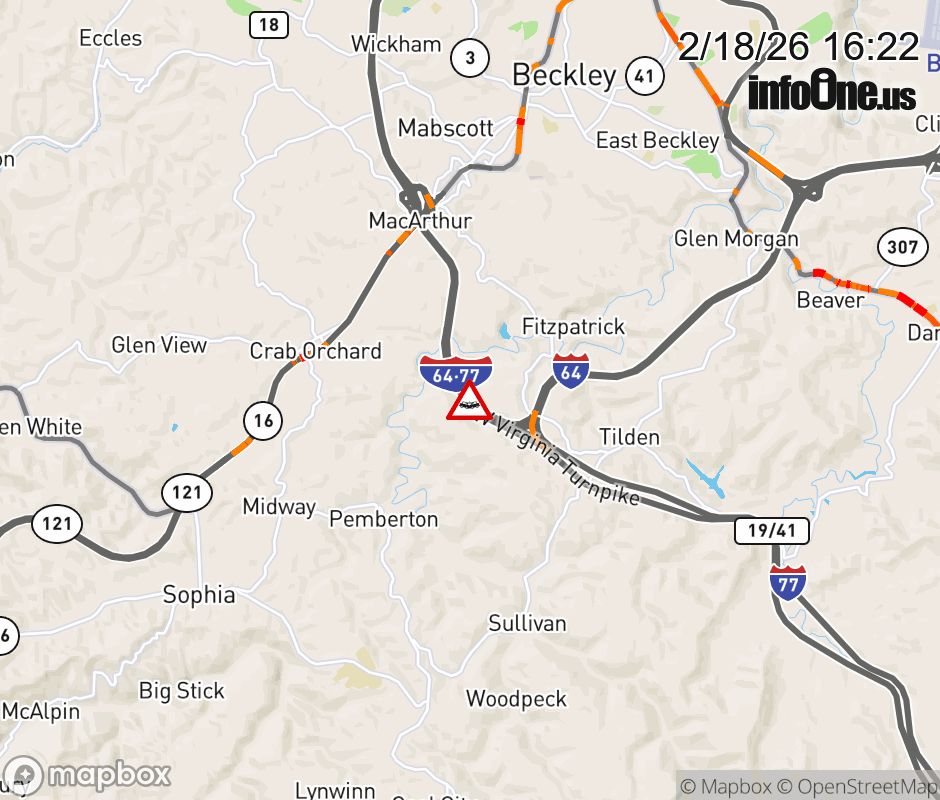 Canceled 2/18/26 5:18 PM Location: I-77 at MM 40.0, WV Accident.