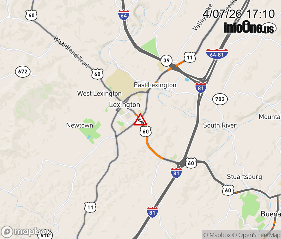 On US-60 in the County of Rockbridge, in the vicinity of the ramp, motorists can expect delays due to a vehicle fire. All east lanes are closed. ![]() |