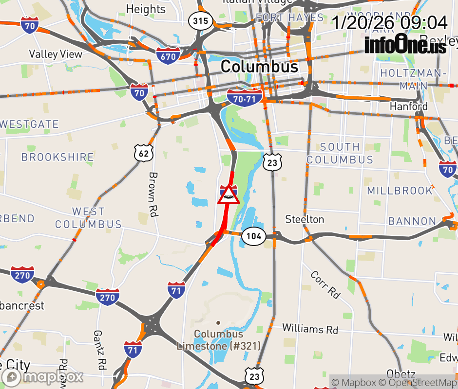 The left shoulder is blocked on I-71 North beyond SR-104/Frank Rd, due to a crash. Updated: Tue 1/20/26 9:04 AM EST ![]() Updated: Tue 1/20/26 9:04 AM EST |