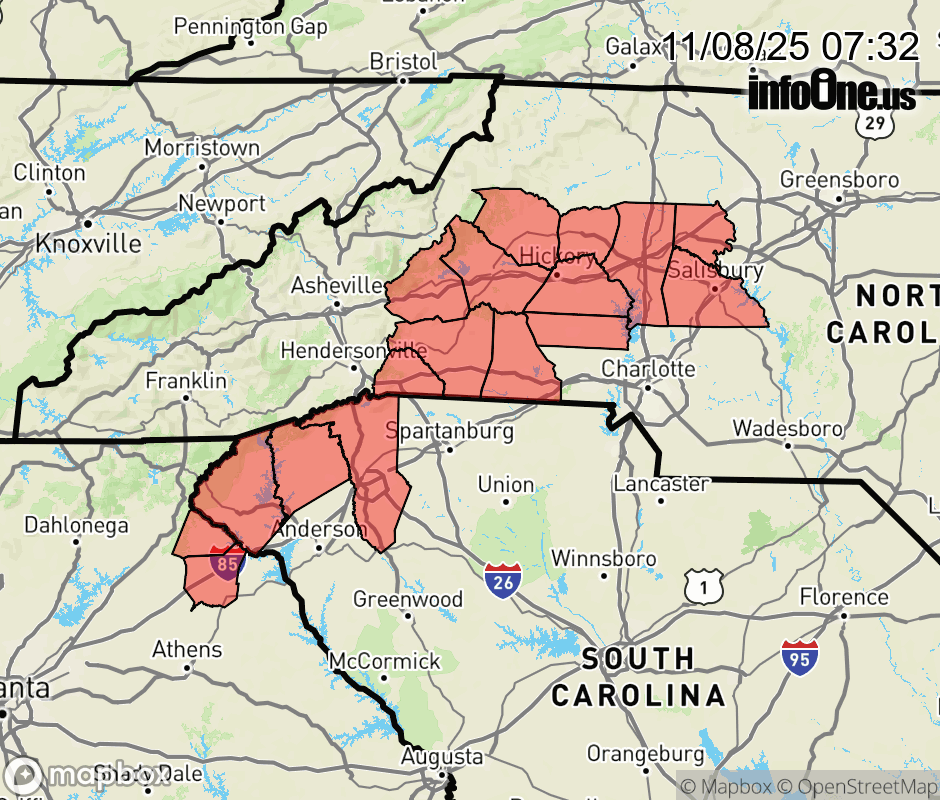 Canceled 11/8/25 10:00 AM Dense Fog Advisory issued November 8 at 7:30AM EST until November 8 at 10:00AM EST by NWS Greenville-Spartanburg SC * WHAT... Visibility one quarter mile or less in dense fog. * WHERE... The foothills of the Carolinas and northeast Georgia, and portions of the western Piedmont of North Carolina. * WHEN... Until 10 AM EST this morning. * IMPACTS... Low visibility could make driving conditions hazardous. ![]() |