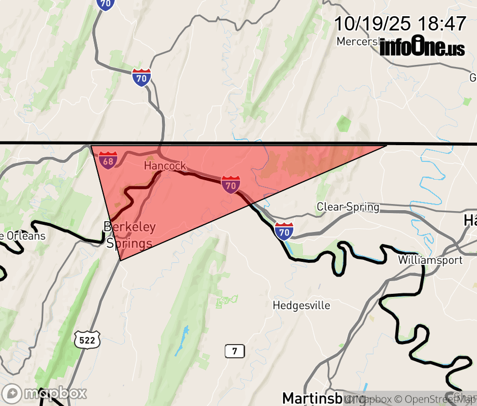 Canceled 10/19/25 7:00 PM Severe Thunderstorm Warning issued October 19 at 6:46PM EDT until October 19 at 7:15PM EDT by NWS Baltimore MD/Washington DC At 646 PM EDT, severe thunderstorms were located along a line extending from near Barnes Gap to Berkeley Springs, moving east at 35 mph. HAZARD...60 mph wind gusts. SOURCE...Radar indicated. IMPACT...Damaging winds will cause some trees and large branches to fall. This could injure those outdoors, as well as damage homes and vehicles. Roadways may become blocked by downed trees. Localized power outages are possible. Unsecured light objects may become projectiles. Locations impacted include... Hancock, Berkeley Springs, Pecktonville, Berryville, Spohrs Crossroads, Sleepy Creek, and Shady Grove. ![]() |