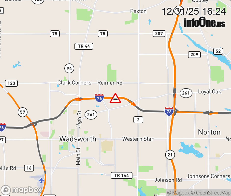 Canceled 12/31/25 5:38 PM Location: I-76/US-224 East E, OH Accident.