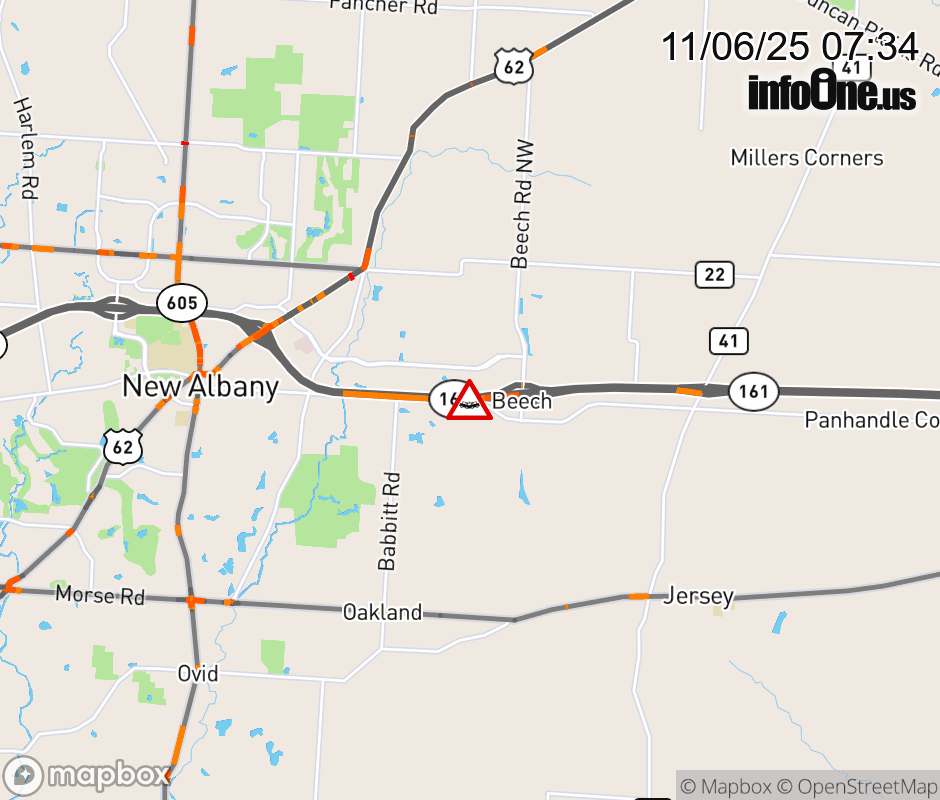 Expect lane closures on SR-161 East beyond US-62, due to a crash. ![]() |