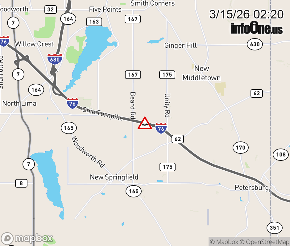 Expect lane closures on I-76 West (Ohio Turnpike) beyond State of Pennsylvania, due to a crash. ![]() |