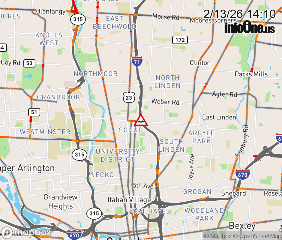 The center lane is blocked on I-71 South at Hudson St, due to a crash. ![]() |