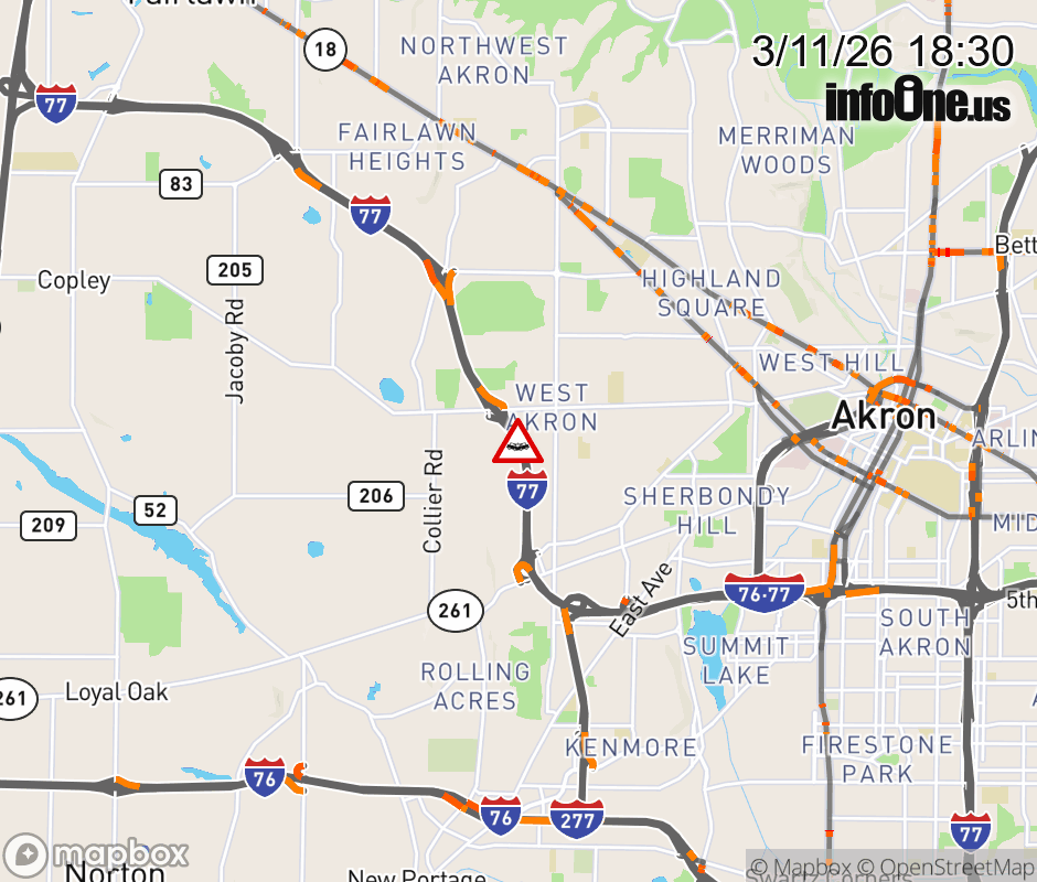 The right lane is blocked on I-77 South beyond SR-162/Copley Rd, due to a crash. ![]() |