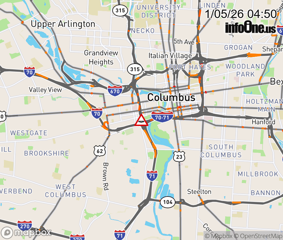 Expect lane closures on Ramp I-70 West to SR-315 North beyond I-70 West, due to a crash. ![]() |