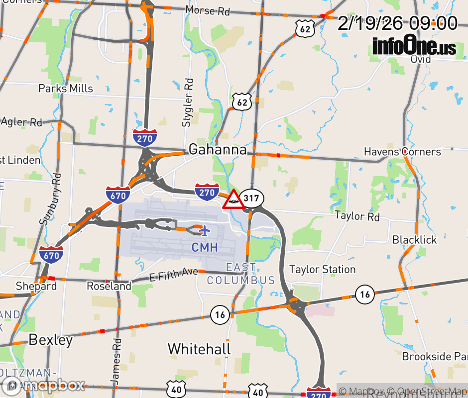 The right lane is blocked on I-270 North beyond SR-317/Hamilton Rd, due to a crash. ![]() |