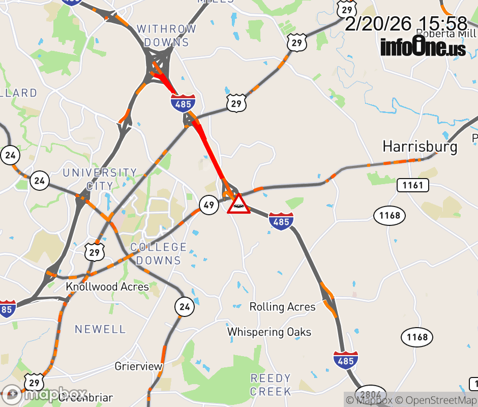 The left shoulder is closed at Exit 33(NC 49). Updated: Fri 2/20/26 3:58 PM EST ![]() Updated: Fri 2/20/26 3:58 PM EST |