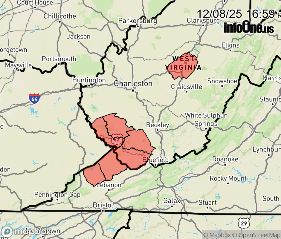 Canceled 12/8/25 6:54 PM Winter Weather Advisory issued December 8 at 4:57PM EST until December 8 at 9:00PM EST by NWS Charleston WV * WHAT... Snow. Additional snow accumulations up to one inch. * WHERE... Portions of southwest Virginia and central and southern West Virginia. * WHEN... Until 9 PM EST this evening. * IMPACTS... Roads, and especially bridges and overpasses, will likely be slick and hazardous. Plan on slippery road conditions. The hazardous conditions will impact the Monday evening commute. ![]() |