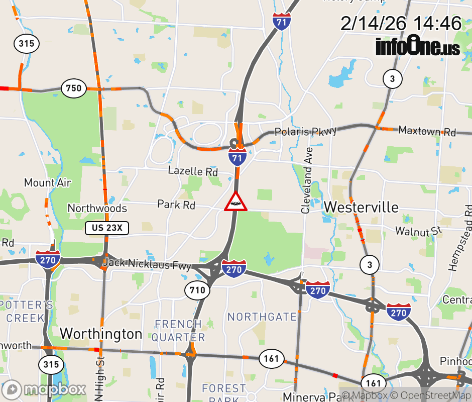 The right lane is blocked on I-71 North beyond I-270 (North Side), due to a crash. ![]() |