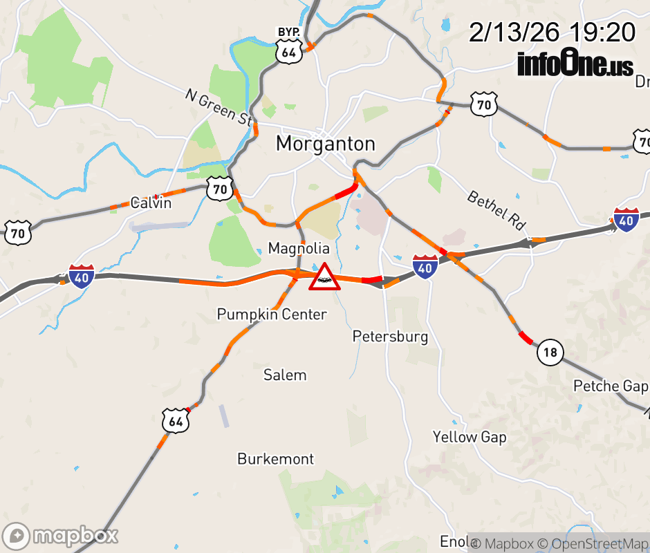 The road is closed at Exit 103, US 64 (Burkemont Ave). Updated: Fri 2/13/26 7:20 PM EST ![]() Updated: Fri 2/13/26 7:20 PM EST |