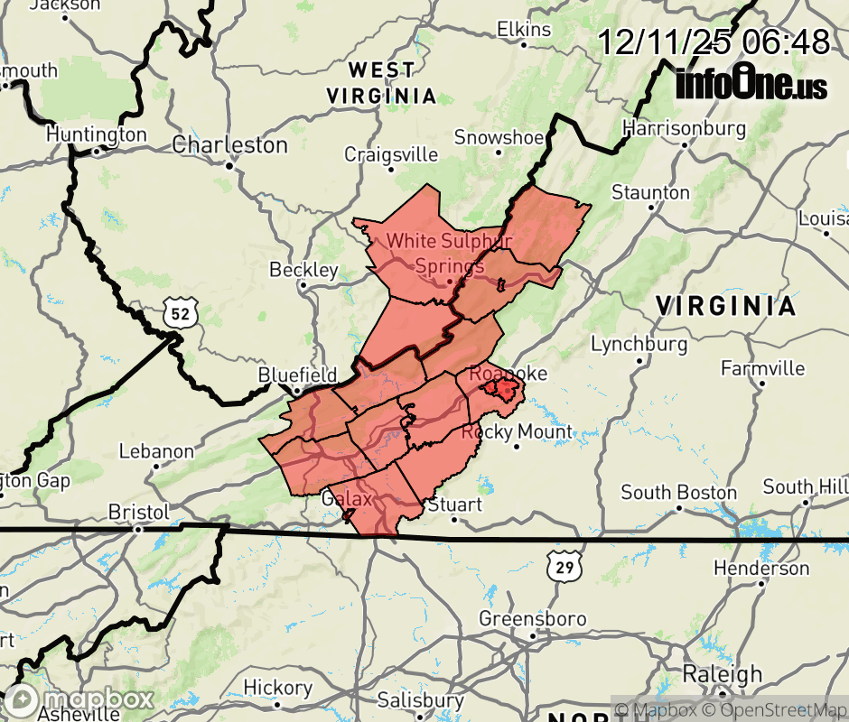 Canceled 12/11/25 10:00 AM Special Weather Statement issued December 11 at 6:47AM EST by NWS Blacksburg VA A combination of snowfall this morning, along with temperatures falling into the 20s has resulted in slick roads. Untreated roads and overpasses will be especially hazardous. Sidewalks and parking lots will also become slick. Slow down and use caution when driving. If you are walking outside, watch your steps on sidewalks, driveways and parking lots. These surfaces could be icy and slippery, increasing your risk of a fall and injury. ![]() |