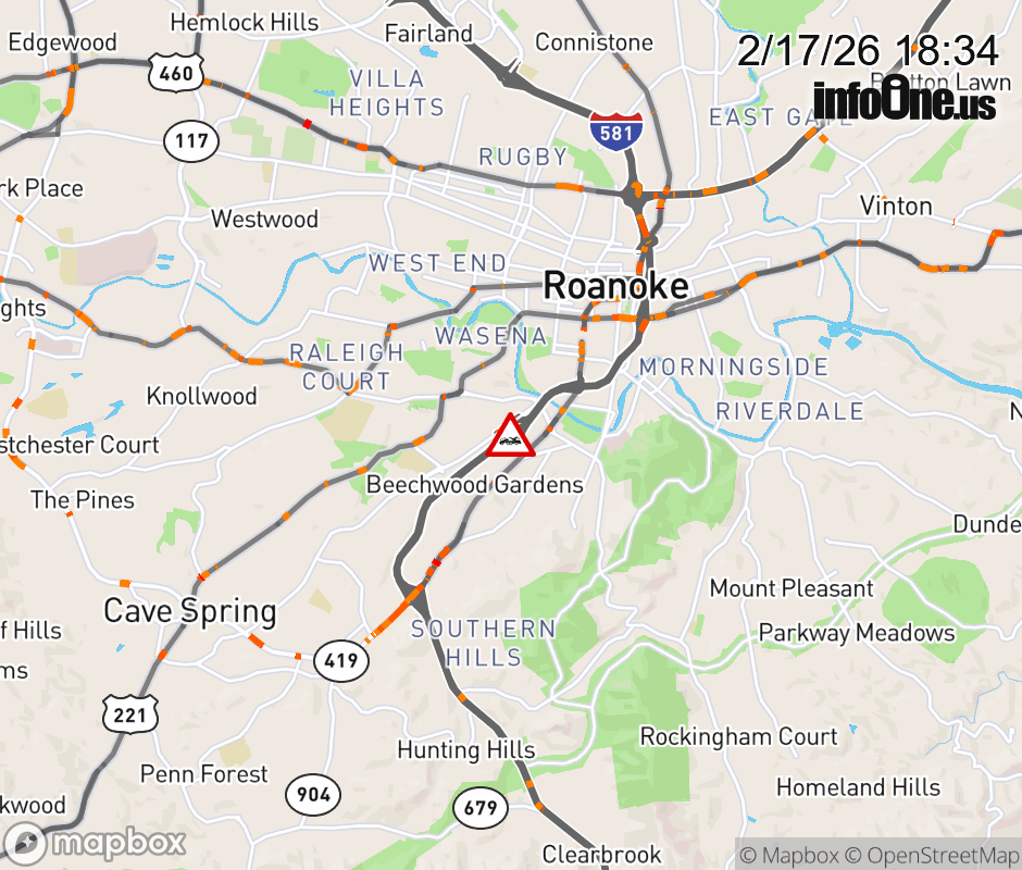 On US-220 in the County of Roanoke, in the vicinity of Exit To Wonju Ramp SW; Ramp Intersection, motorists can expect delays due to a disabled vehicle. The south left shoulder and left lane are closed. Updated: Tue 2/17/26 6:34 PM EST ![]() Updated: Tue 2/17/26 6:34 PM EST |