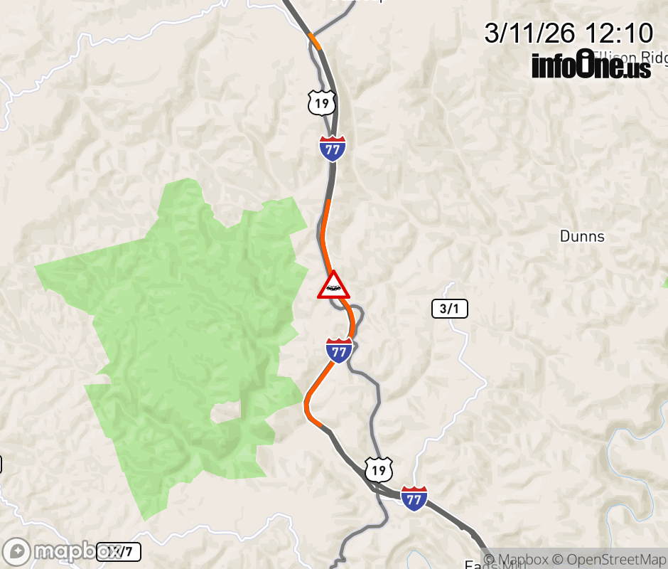 Canceled 3/11/26 12:32 PM Location: I-77 at MM 23.0, WV Accident.