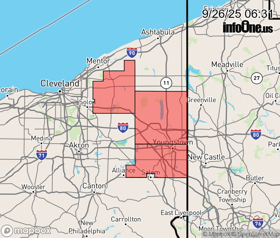 Canceled 9/26/25 10:00 AM Dense Fog Advisory issued September 26 at 6:29AM EDT until September 26 at 10:00AM EDT by NWS Cleveland OH * WHAT... Visibility one quarter mile or less in dense fog. * WHERE... Geauga, Mahoning, and Trumbull Counties. * WHEN... Until 10 AM EDT this morning. * IMPACTS... Low visibility could make driving conditions hazardous. ![]() |