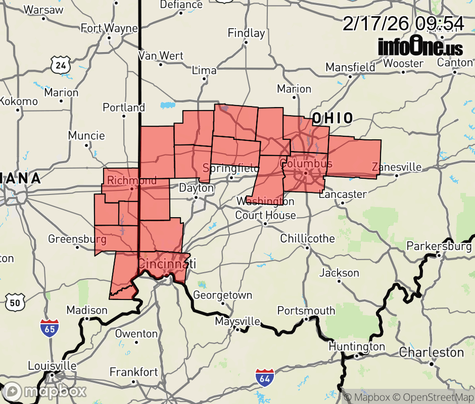 Canceled 2/17/26 10:00 AM Dense Fog Advisory issued February 17 at 9:53AM EST until February 17 at 10:00AM EST by NWS Wilmington OH Visibility is improving and widespread dense fog is no longer expected. Continue to exercise caution, especially while traveling through river valleys where the fog may persist through late morning. ![]() |