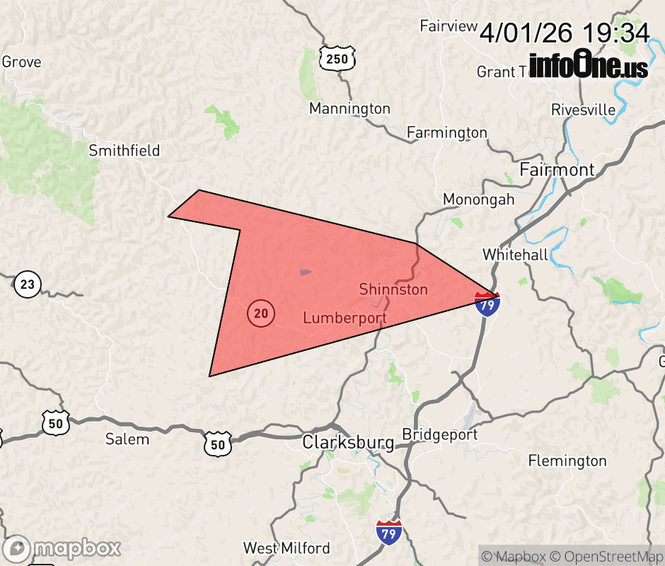 Canceled 4/1/26 7:45 PM Severe Thunderstorm Warning issued April 1 at 7:32PM EDT until April 1 at 7:45PM EDT by NWS Charleston WV At 732 PM EDT, a severe thunderstorm was located near Enterprise, or near Mannington, moving east at 35 mph. HAZARD...60 mph wind gusts. SOURCE...Radar indicated. IMPACT...Expect damage to roofs, siding, and trees. Locations impacted include... Shinnston, Lumberport, and Enterprise. ![]() |