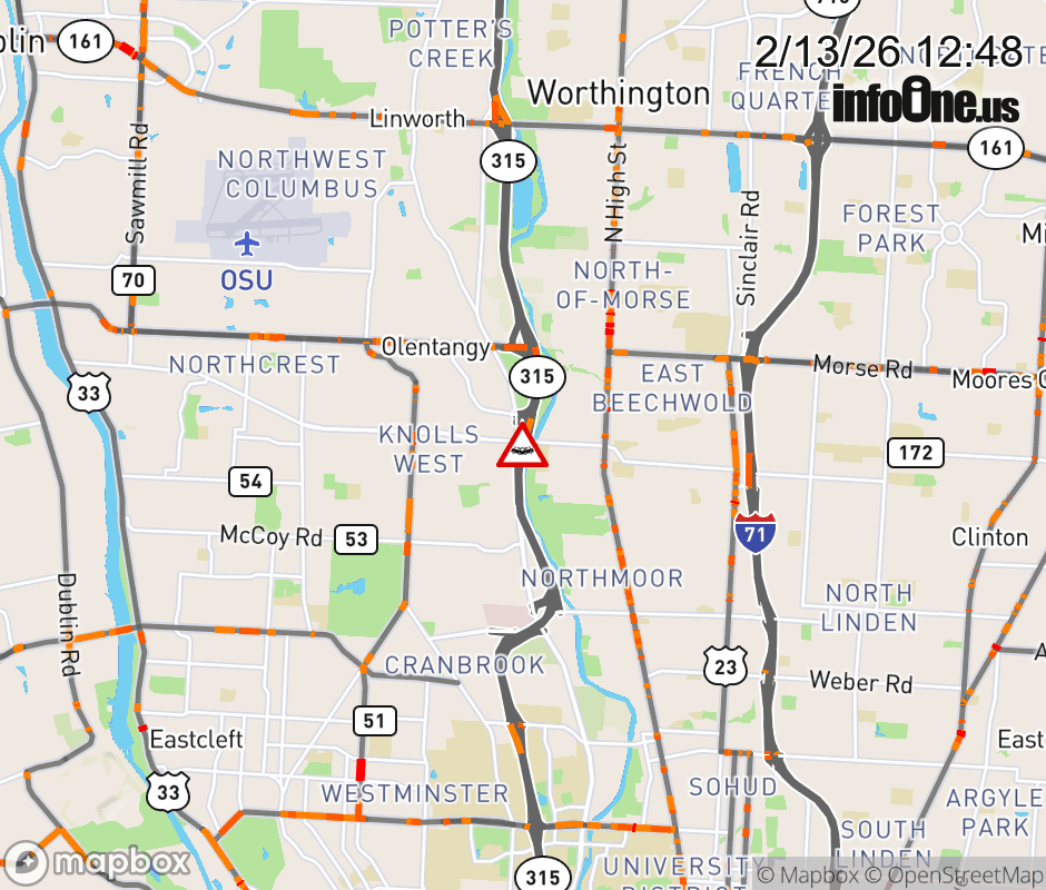The left lane is blocked on SR-315 North beyond Henderson Rd, due to a crash. Updated: Fri 2/13/26 12:48 PM EST ![]() Updated: Fri 2/13/26 12:48 PM EST |